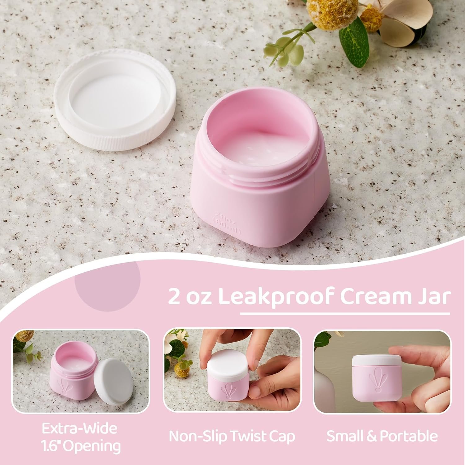 2oz Wide-Mouth Silicone Cream Jars: Extra-wide 1.6-inch opening (4cm) allows easy scooping with fingers or spatulas, paired with anti-slip screw lids for leakproof storage of thick creams, balms, or serums. INSFIT small travel containers for creams are your ideal travel accessories.